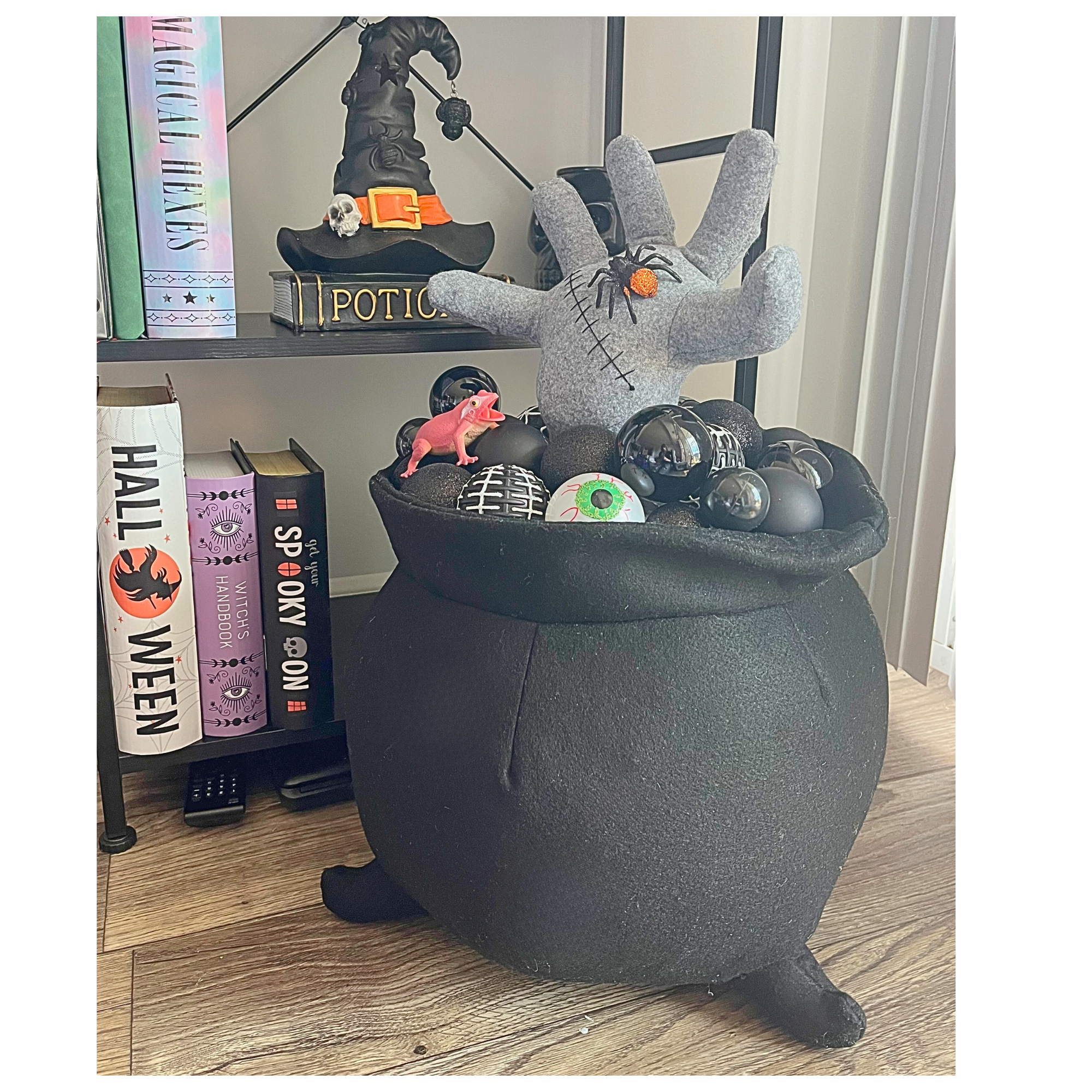 Add a witch hat resting at the base for an extra Halloween touch