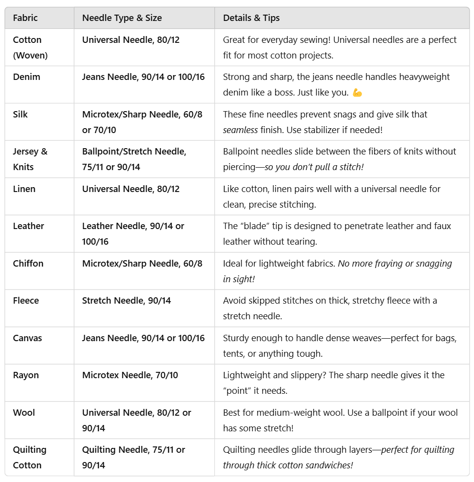 Fabric Types and Best Needle Matches: A Stitch in Time Saves Fabric 🎉