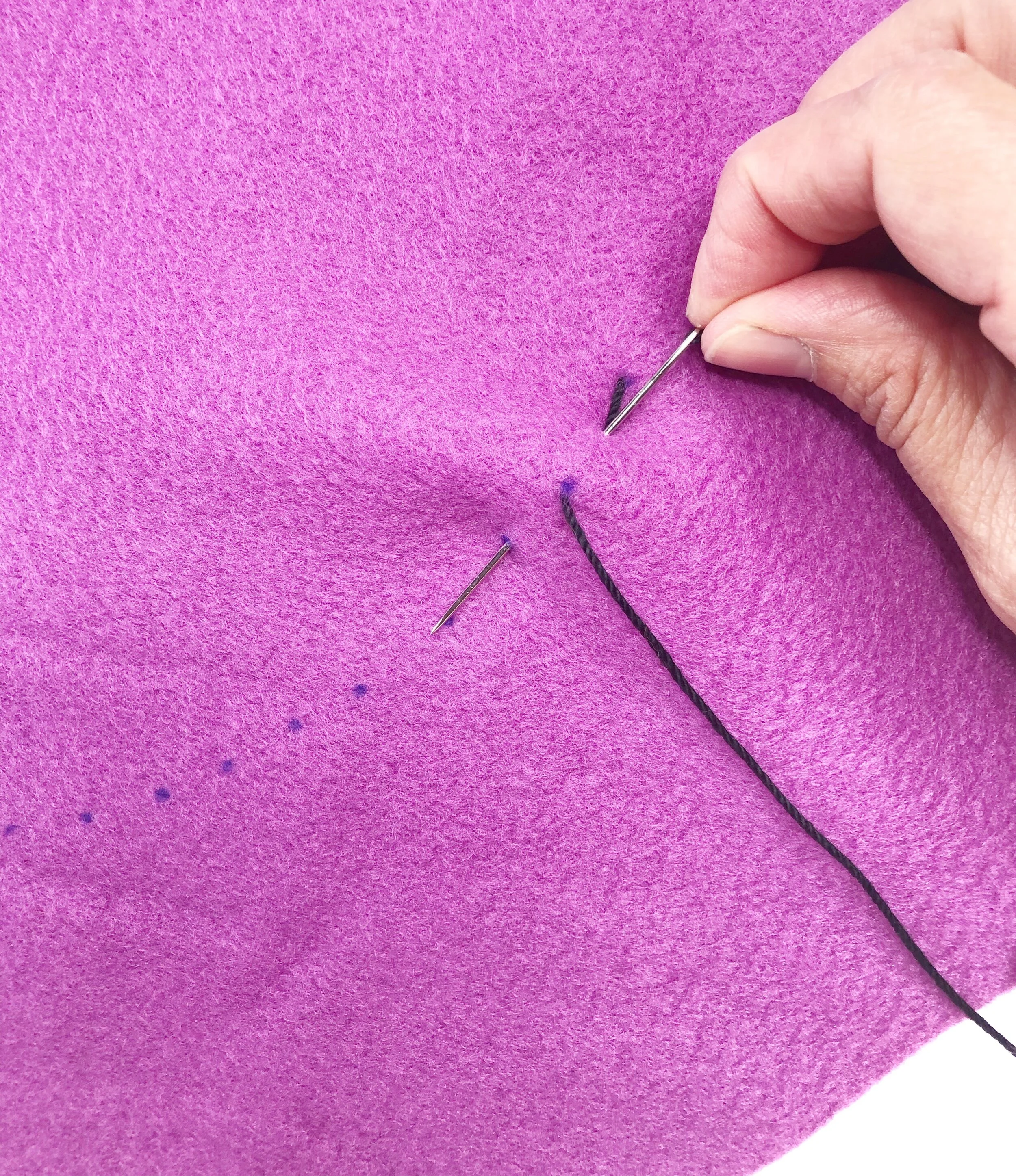 Using black embroidery floss and needle, backstitch the mouth.