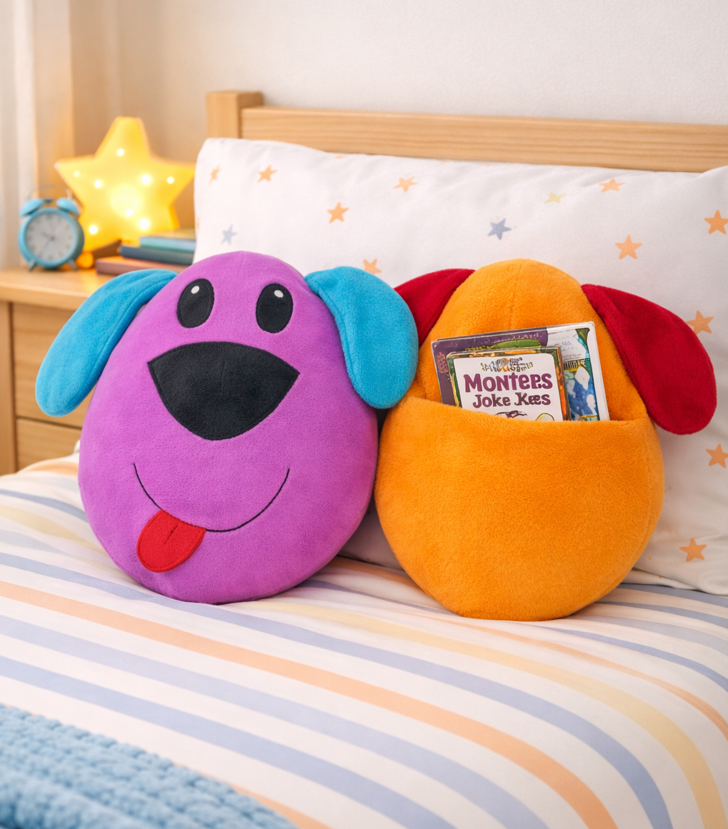 Pocket pillows, also know as book pillows or reading pillows, have a pouch on the front or back for storage! This adorable puppy pillow pattern will show you how to create a pocket pillow on the back of it, perfect for storing your child’s favorite bedtime story or their pajamas. Ideal for the next sleepover or pajama party!