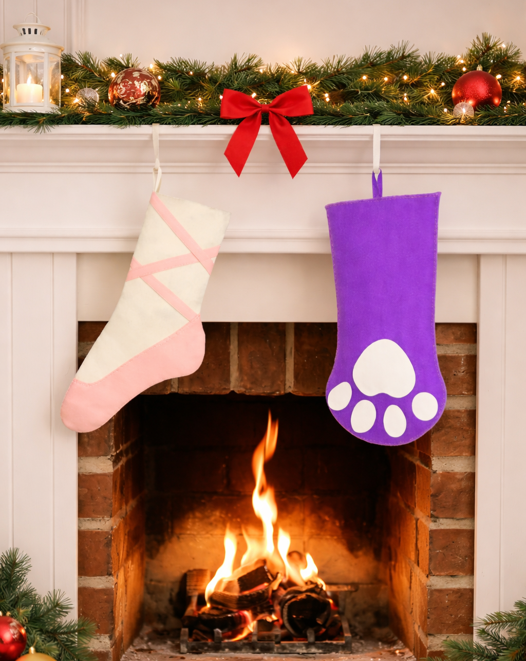 Get ready to add some festive flair to your fireplace with these charming ballet slipper and paw stockings! No sewing machine is required—just grab your supplies, download the patterns, and follow the instructions to create your own holiday decorations.