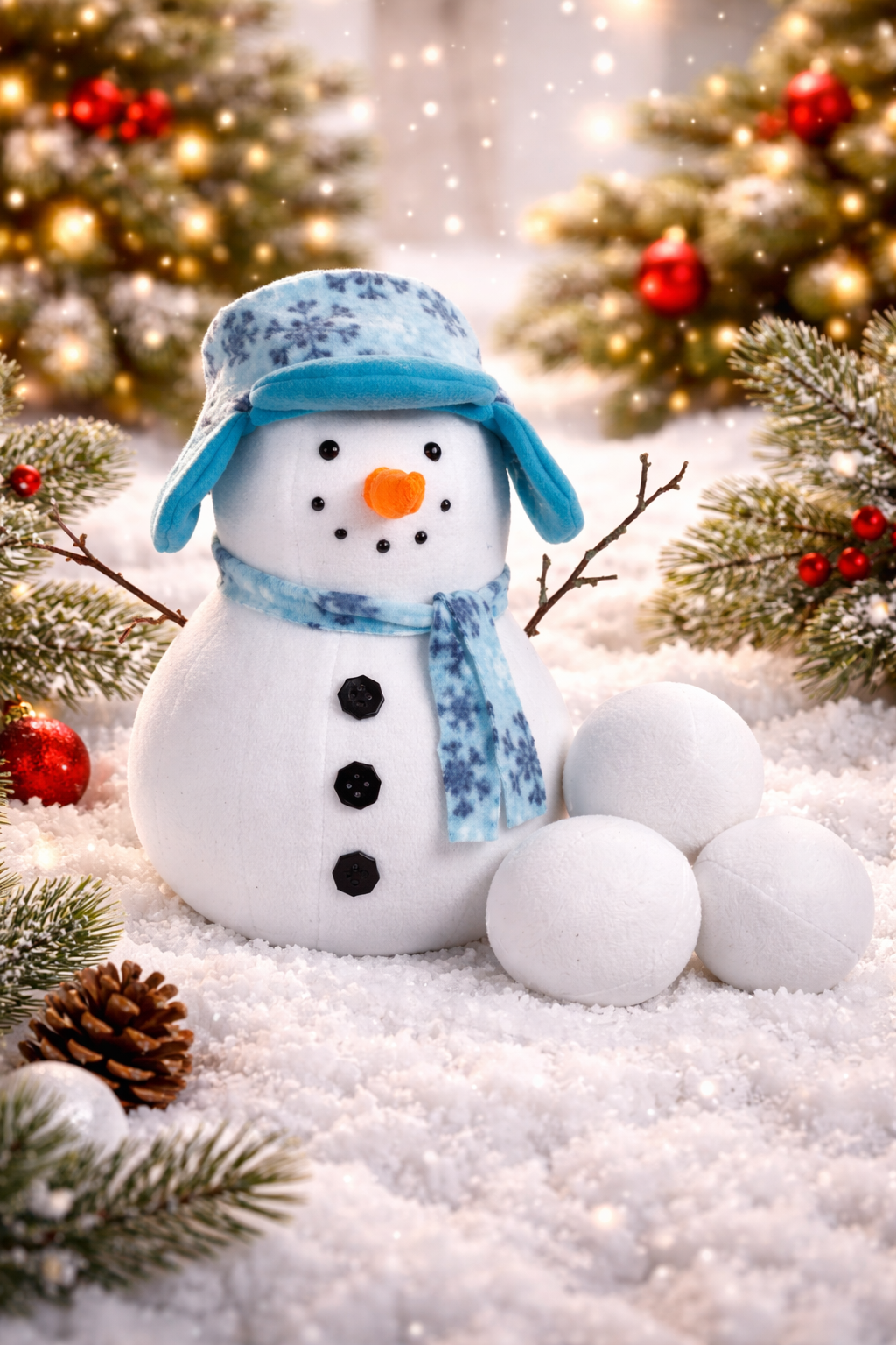 Holiday Decor: Place your snowman on the mantel, under the tree, or as a centerpiece for a holiday table. Scatter the snowballs around for an extra festive touch!