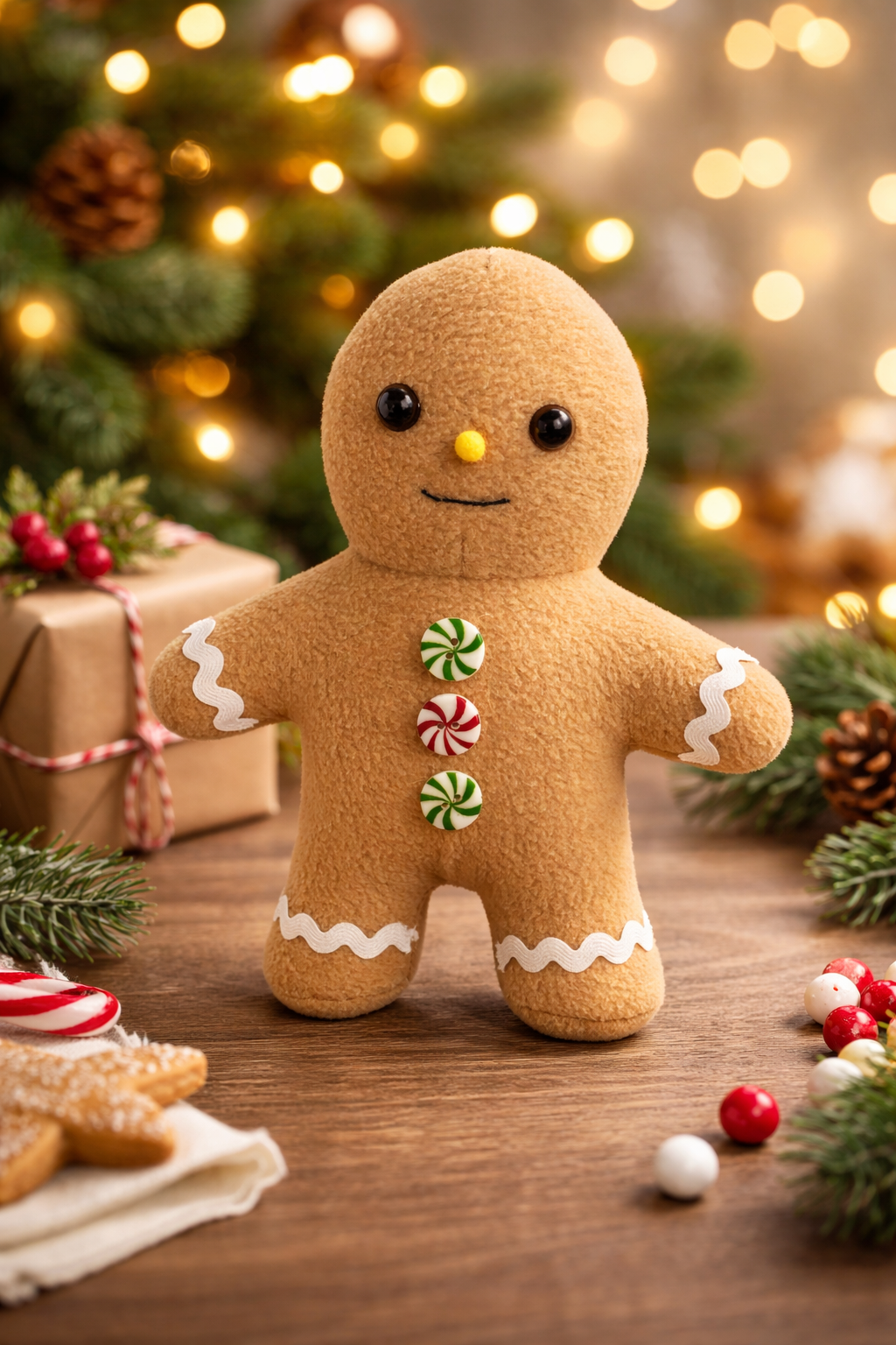 Scaling Tips: Want a jumbo gingerbread or tiny tree ornament? Print the pattern at 200% for a plushie or 50% for a mini! π