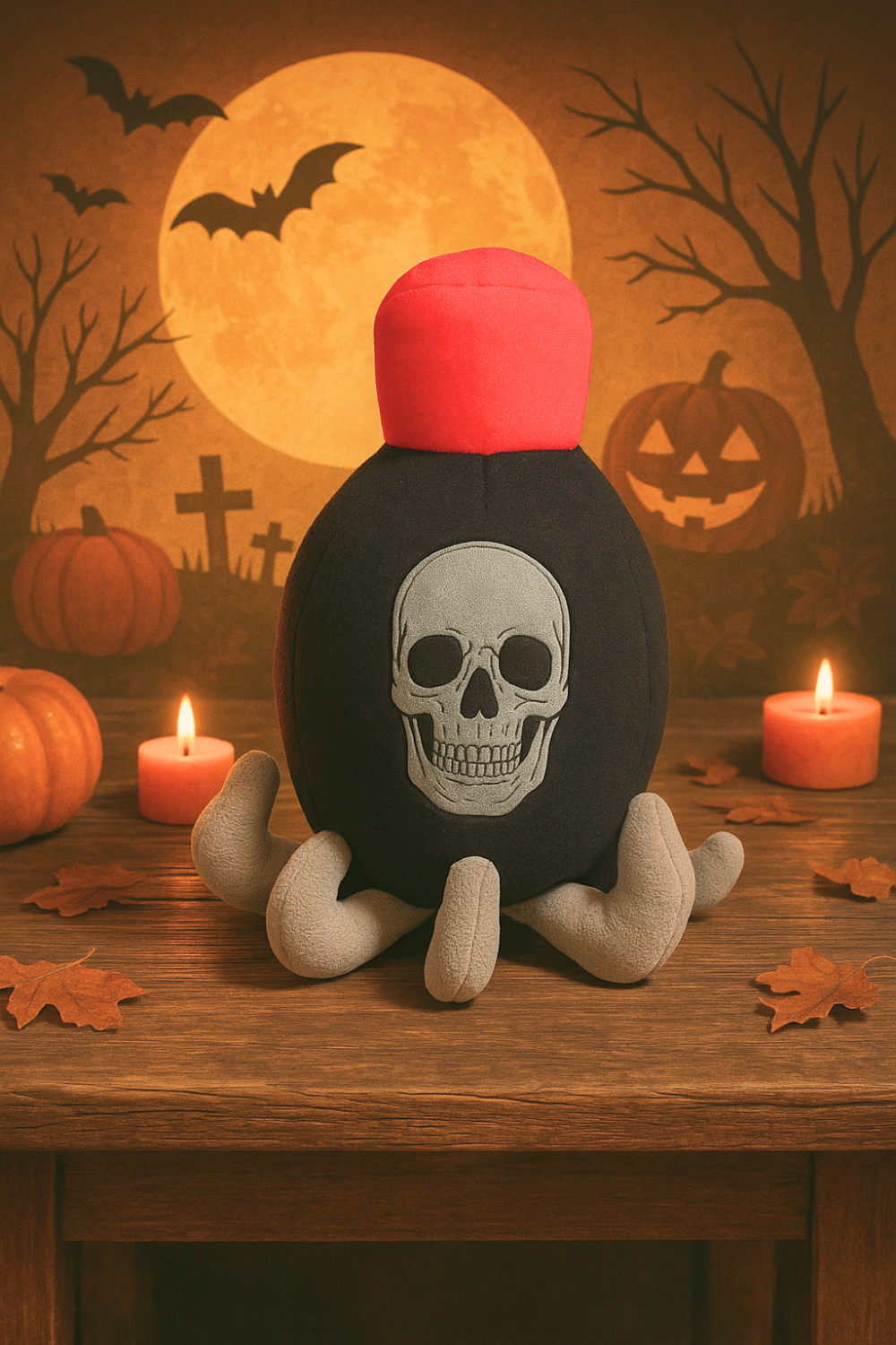 Deep in the haunted woods, under the glow of a blood-red moon, a potion bubbled and fizzed. The witch cackled as she stirred her cauldron, whispering spells only the bravest dared repeat. And just as the brew threatened to spill over, a strange bottle rose from the shadows—tentacle-like fingers clutching at the earth, a grinning skull on its side. Was it holding secrets, curses, or candy corn? (Spoiler: you decide when you sew it!)