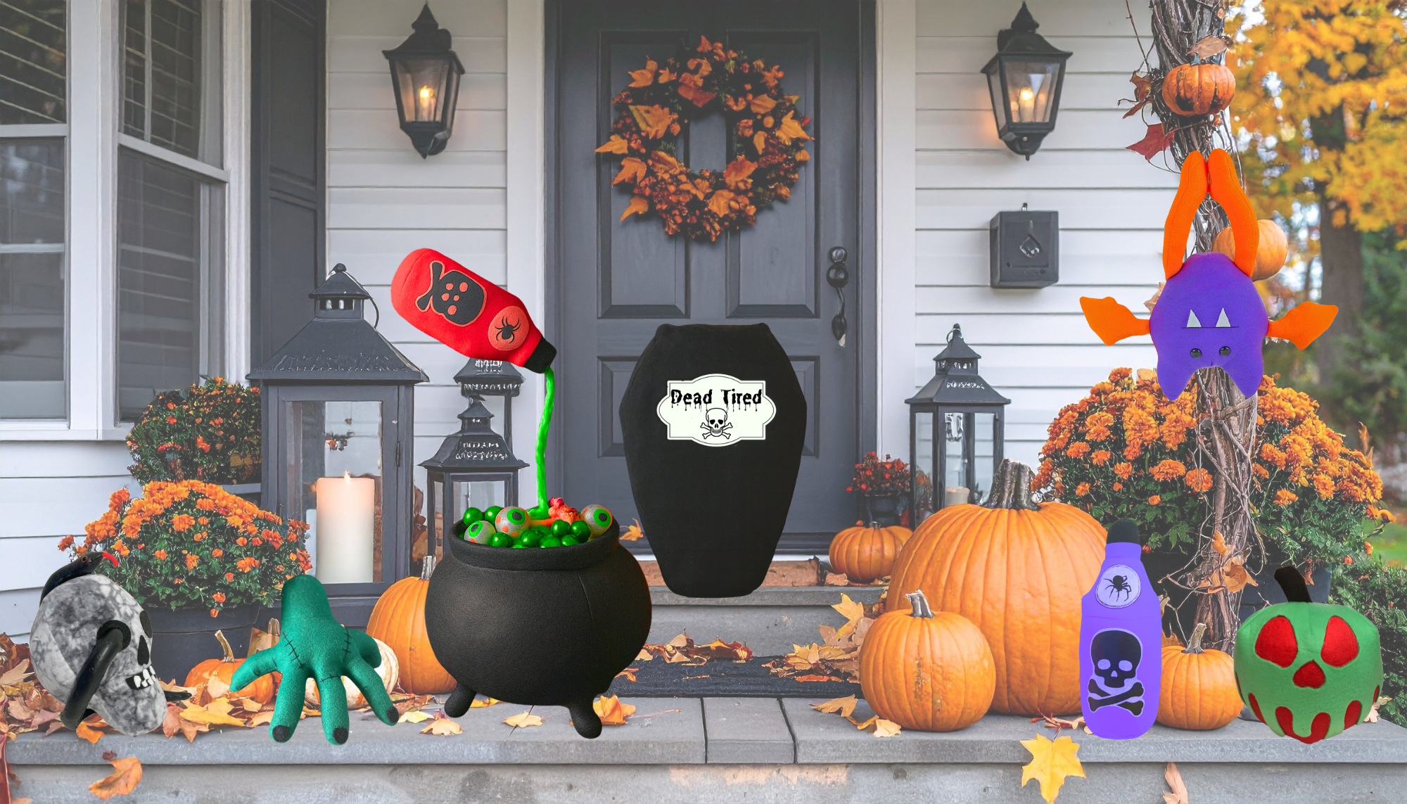 “Trick or treat…” a whisper carried through the room. From behind the pumpkin basket hopped a Candy Corn Doll, its grin mischievous. Then a ghost in a pumpkin plush popped up, bouncing like it was ready to haunt the trick-or-treaters.