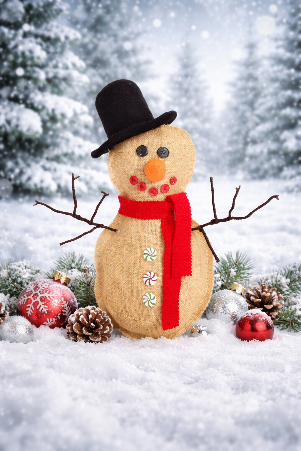 A rustic and cozy winter project that brings a touch of farmhouse charm to your holiday decor with its textured burlap finish ⛄✨