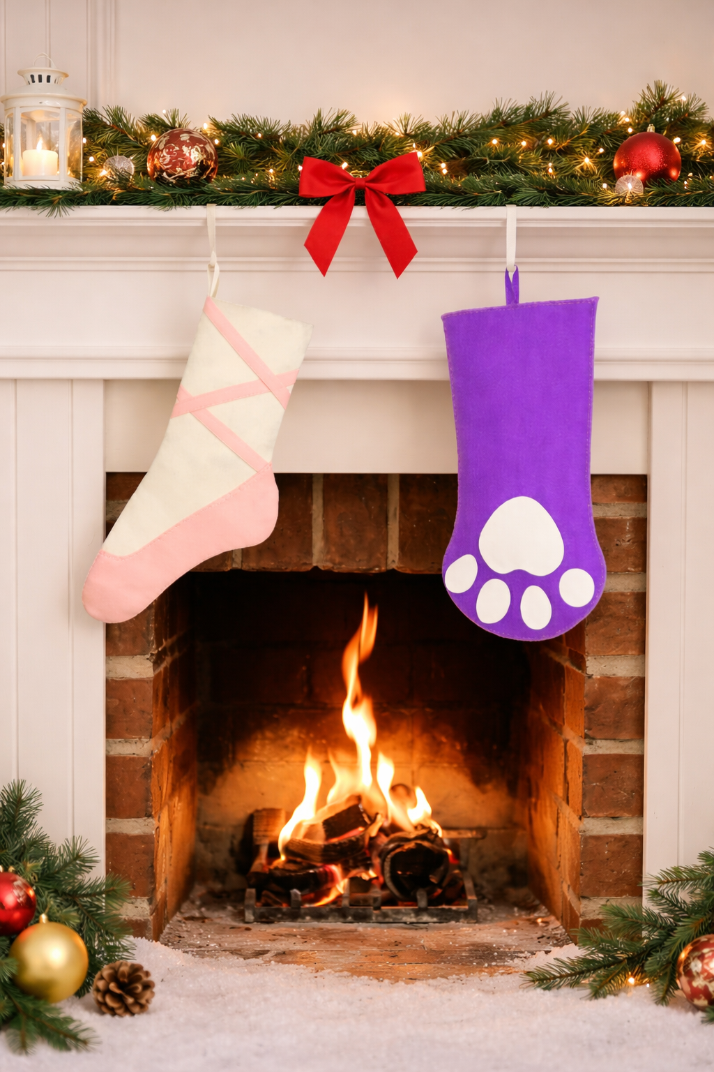 Two adorable stocking designs—one sweet and elegant, one cozy and playful—perfect for adding a personal (and paw-sonal 🐾) touch to your holiday decor,