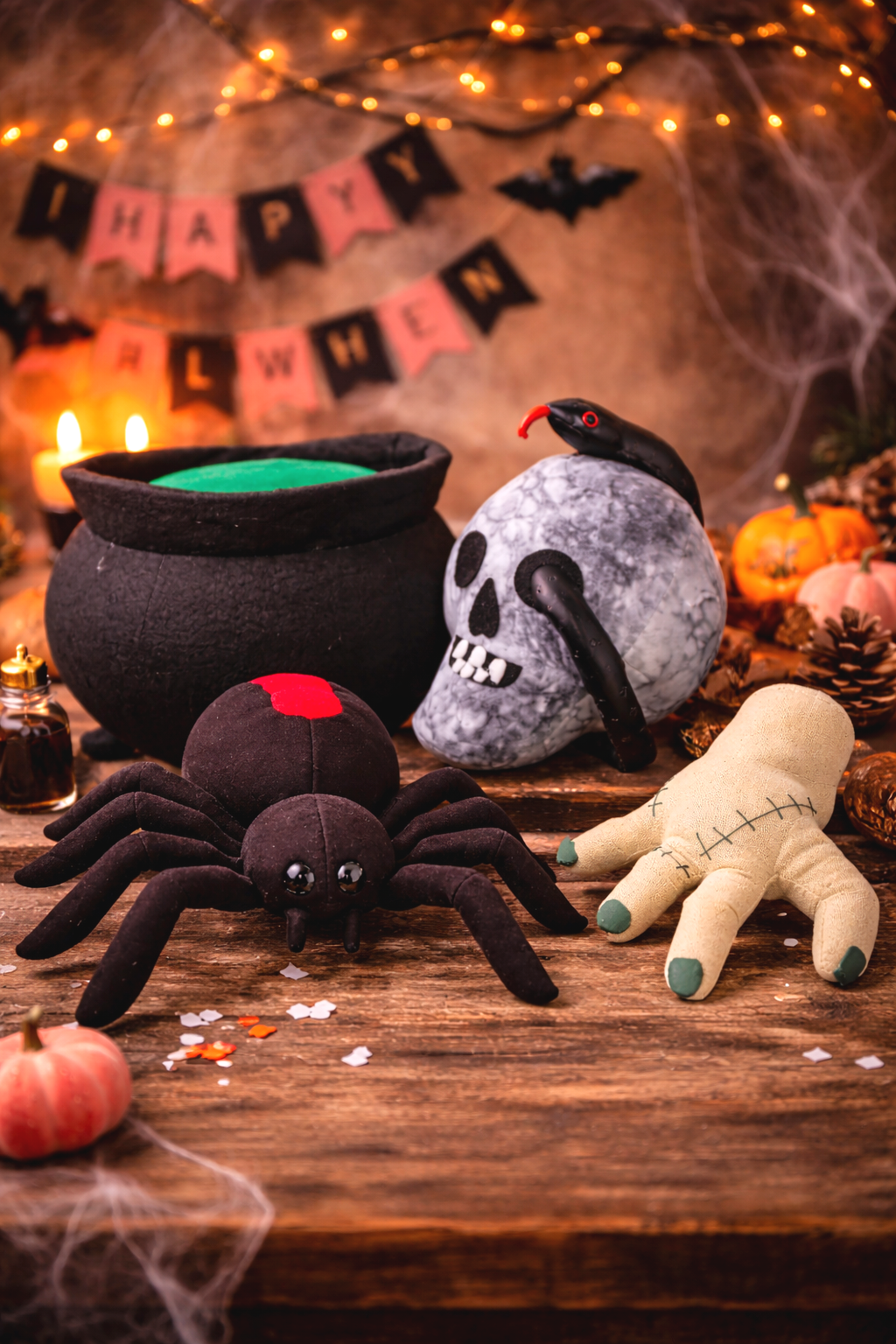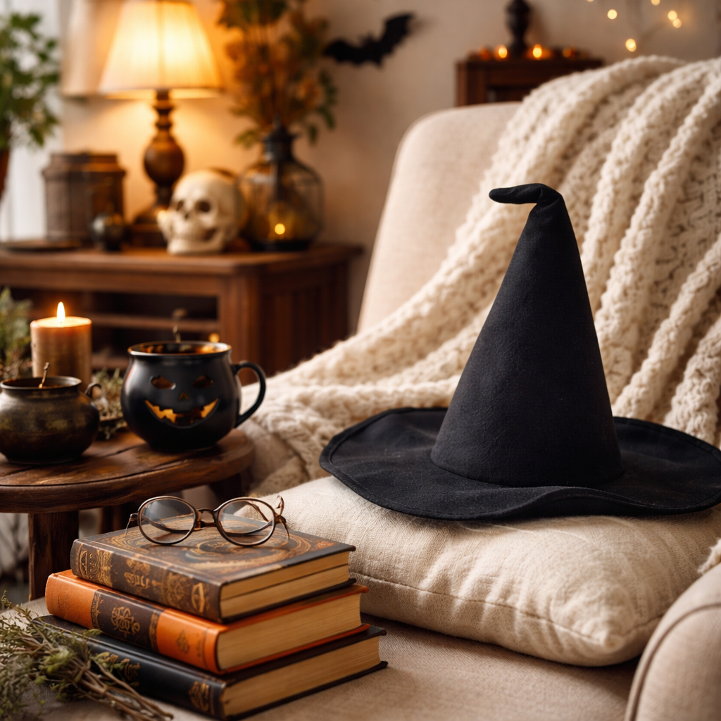 Cauldrons, magical accessories, and whimsical plush decor with enchanting fall vibes.